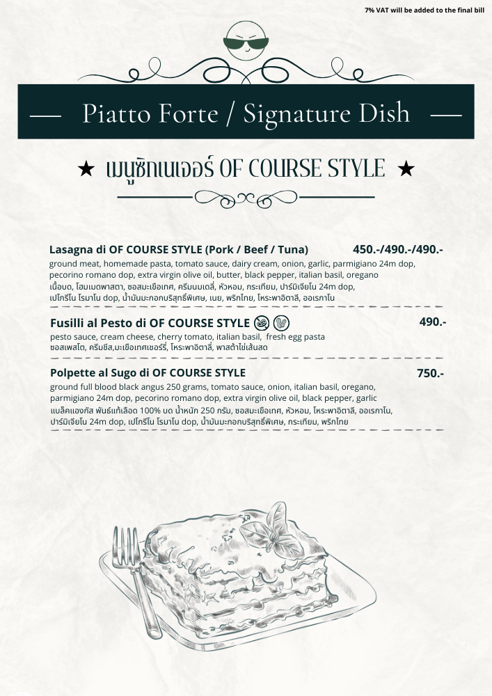 This category is the very signature of OF COURSE STYLE. Here, our chefs express their unique culinary creativity, using classic pasta as a canvas for unexpected yet thoughtful combinations of flavors and ingredients. Each dish is a special creation that tells our distinct story.